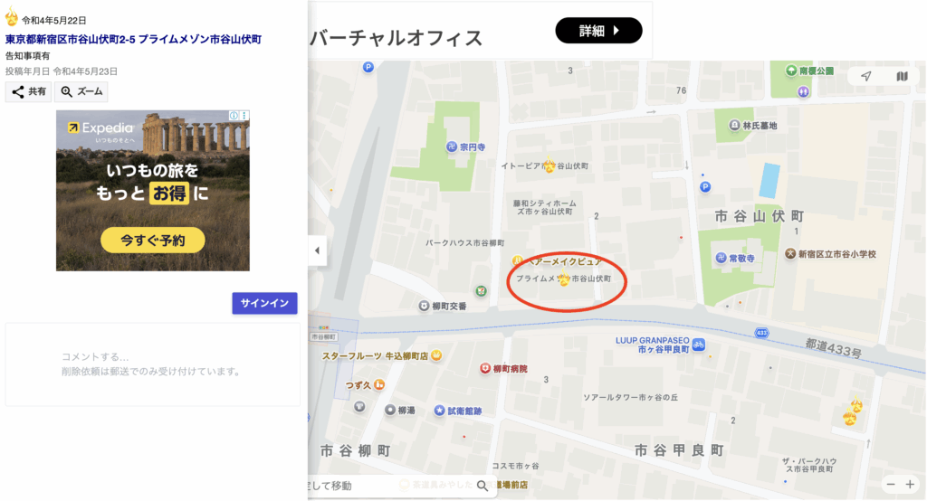 ここまでで「プライムメゾン市谷山伏町は事故物件の可能性が高い」とわかりました。ただ、実際に申し込みを進める際は、もう一つ大切な確認があります。