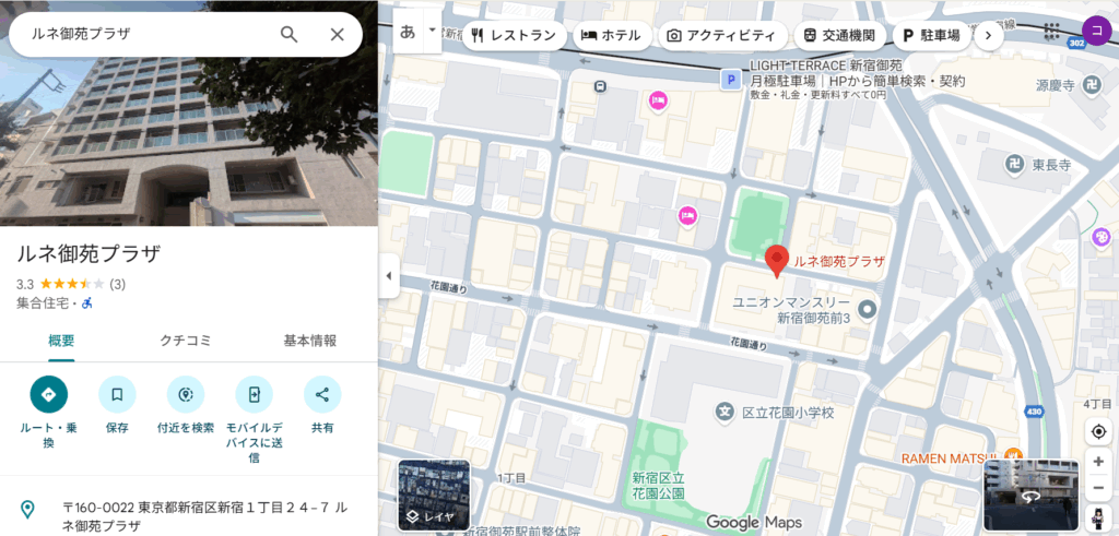 - ルネ御苑プラザの初期費用を無料で見積もり